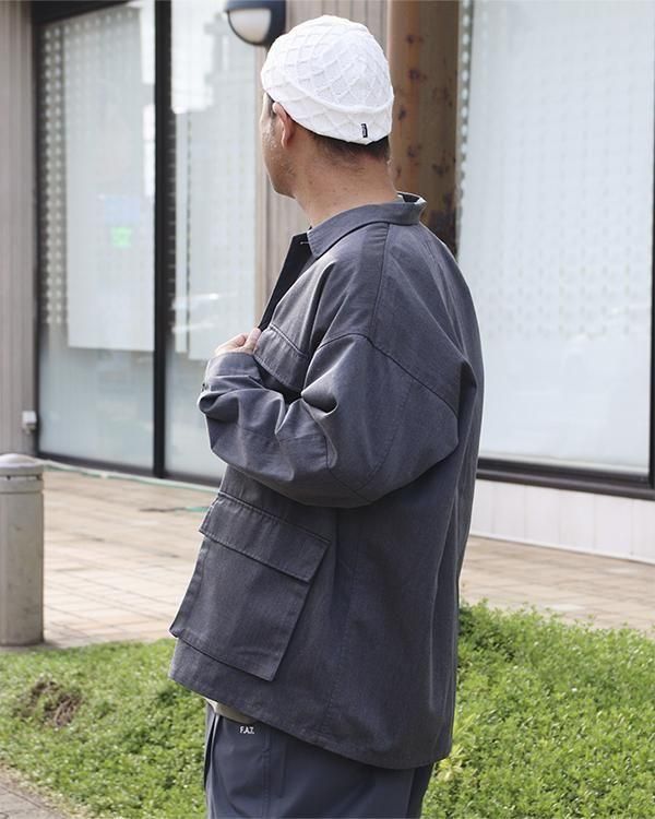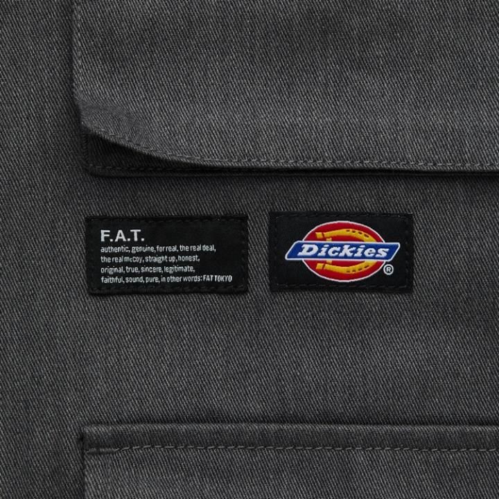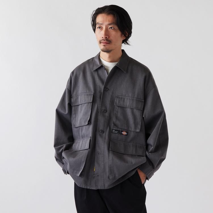 FAT×DickiesのコラボレーションによるBDUシャツ。DickiesオリジナルのソフトT/Cツイルを使用したミリタリーテイスト溢れるアイテム。身幅・肩幅にゆとりをもたせたBIGシルエットが印象的。ルーズになりすぎないレングスや袖廻りはボリュームのあるボトムスを合わせていつもとは違うカジュアルコーディネートを楽しみたい。アウターライクにパーカーの上から合わせても面白い。大振りな胸ポケットとFAT/Dickiesのブランドネームが程よいアクセントに。