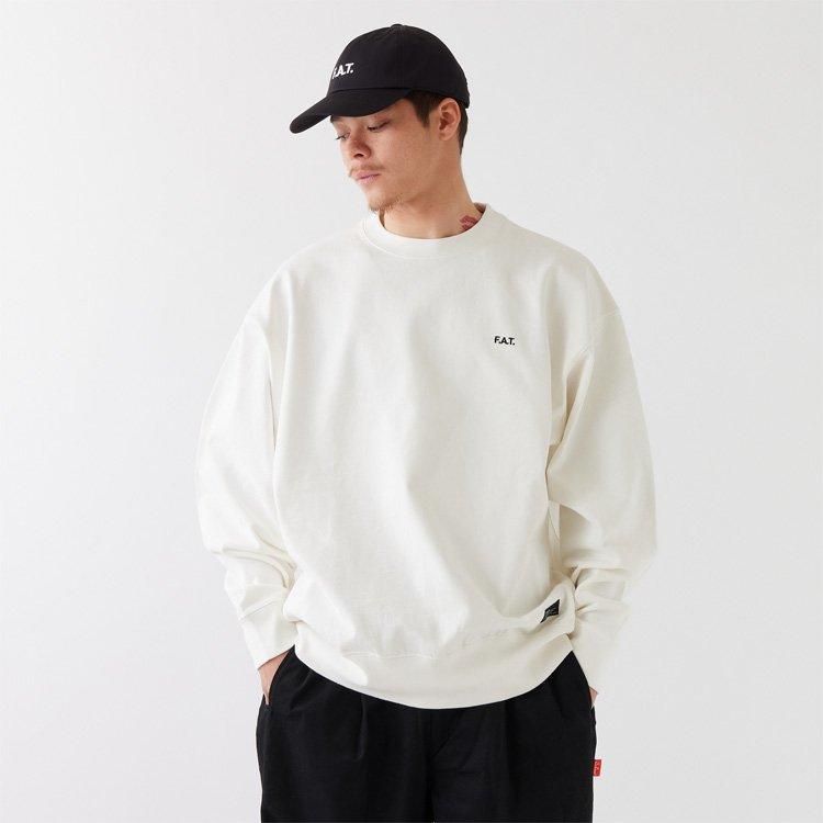 F.A.T.の代名詞でもあるヘビーオンスシリーズのクルーネックカットソー。糸からオリジナルで編み上げたこだわりの13oz生地は、触っただけで違いがわかるクオリティ。通常よりも身幅にゆとりをもたせたBIGシルエットで、裾リブやサイドパネルを備えたスウェットライクなデザインは幅広いコーディネートで活躍してくれるアイテム。裾のブランドネームが程よいアクセントに。
