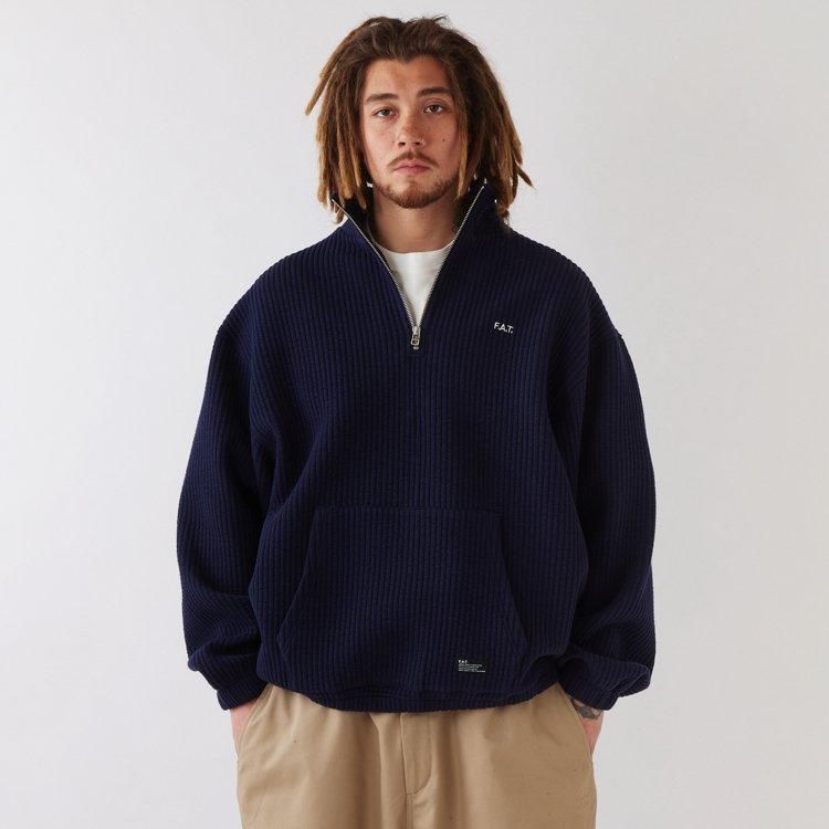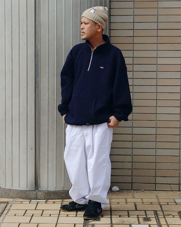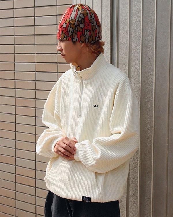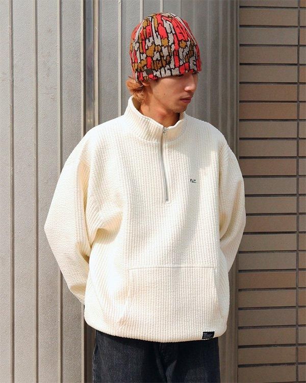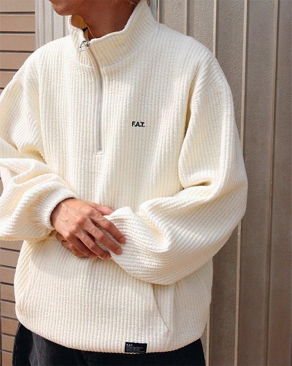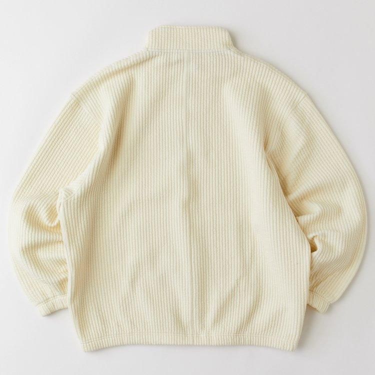 中綿入りのカット素材を使用することで、独特な暖かみのある仕上がりになったハーフジップスウェット。