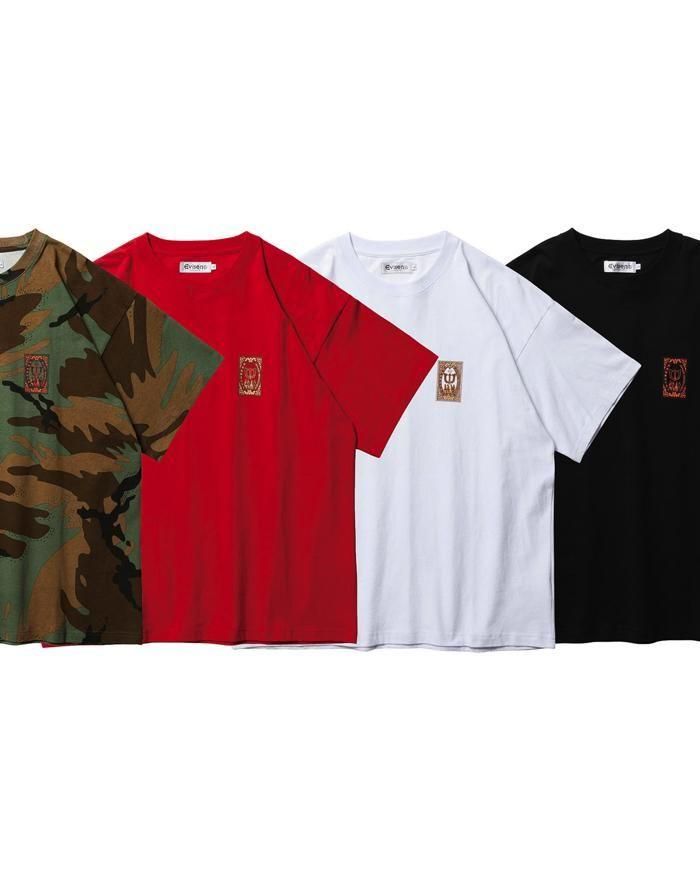 ブラック、ホワイト、レッドの他、迷彩柄はオリジナルのEVI CAMO柄にプリント。