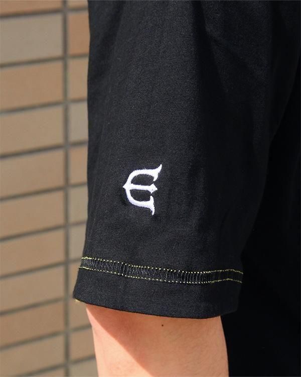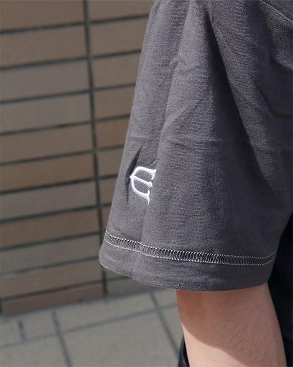 裏側は約3.7 ozのソリッドカラーで、左袖口にEロゴ刺繍のワンポイント入りのシンプルなデザイン。