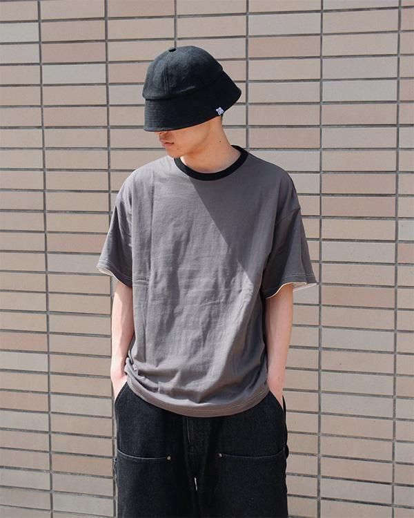 薄さの異なるコットン天竺生地を重ねたリバーシブルTシャツ。