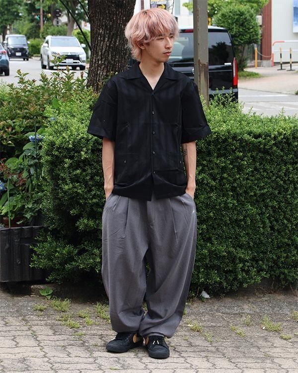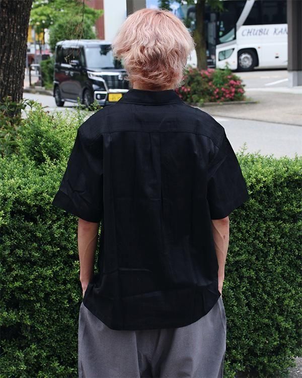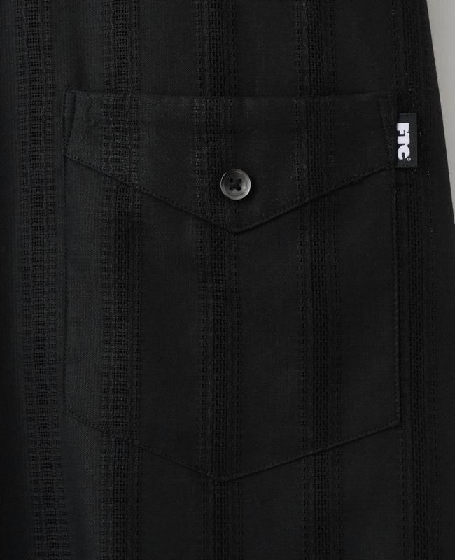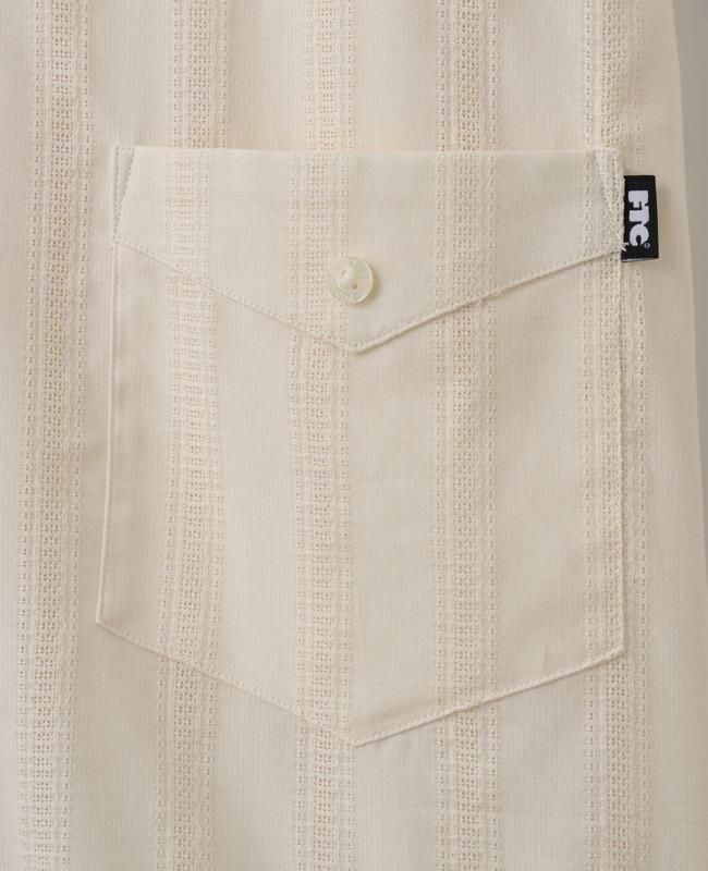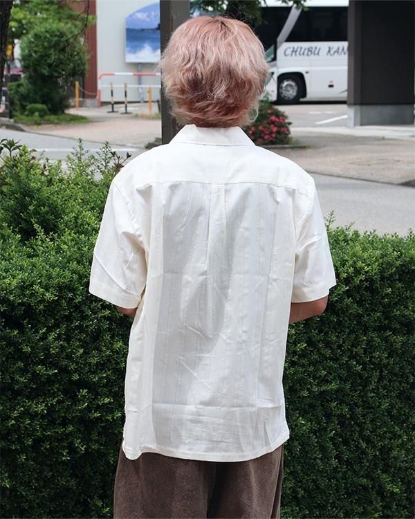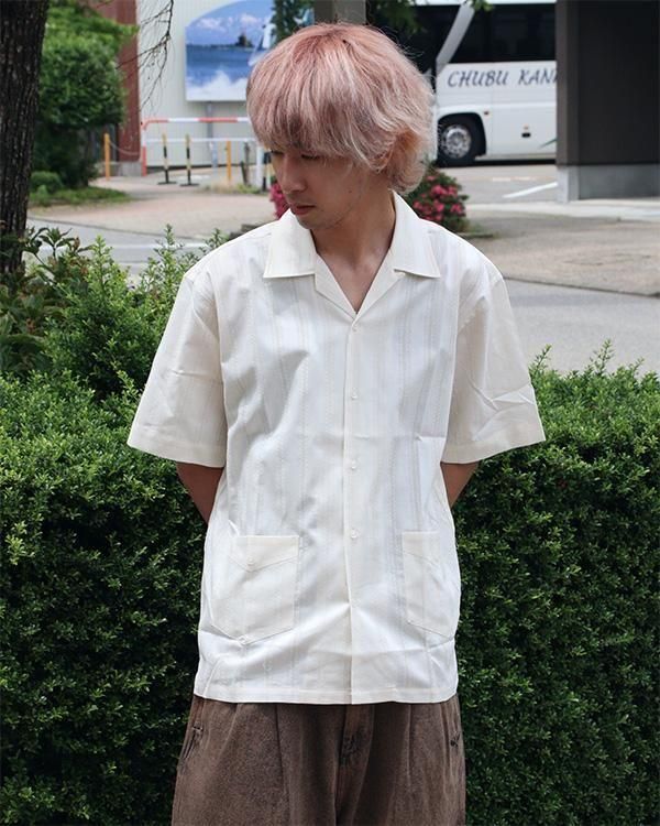 カラミ織りと呼ばれる特殊織り機によって作られた、メッシュ状にストライプを配したコットン素材を使用したグアヤベラシャツ。