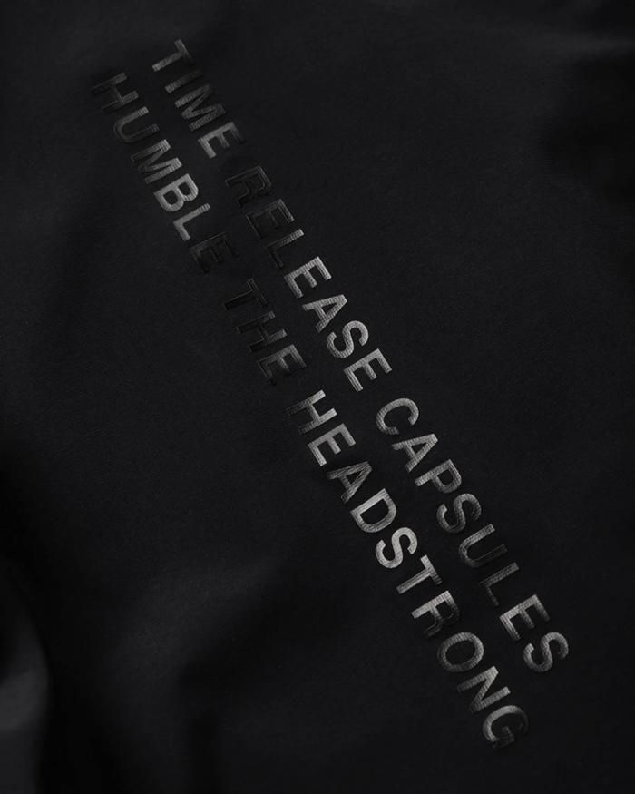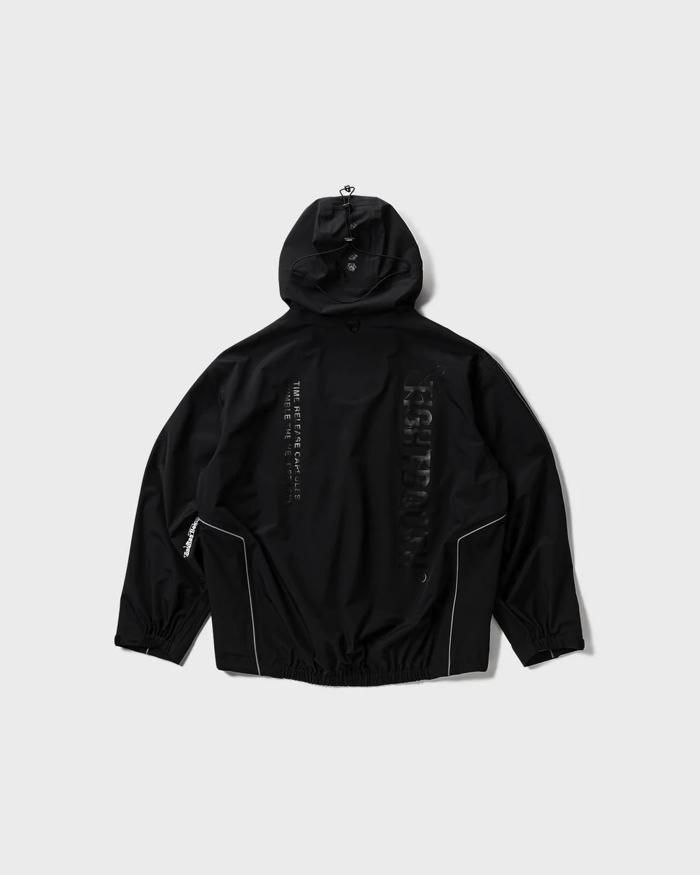後頭部にグラフィックをプリントした3パネルのフードには、約5cmのブリムとフック付きのドローコード仕様。