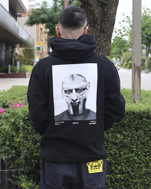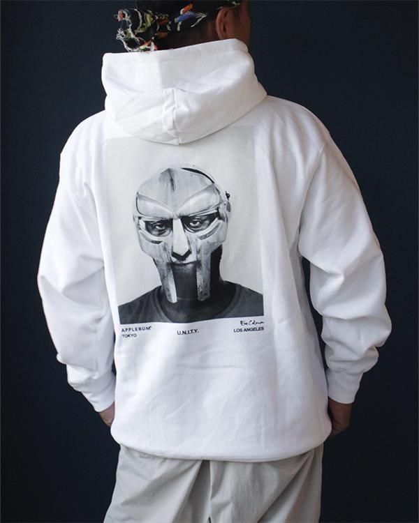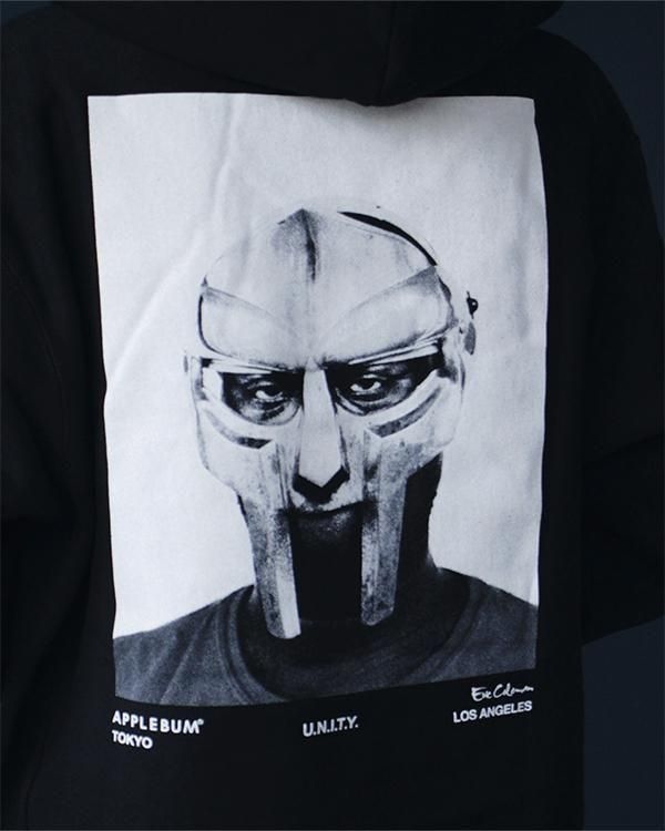 伝説的MC・MF DOOMのポートレートをフロントに大胆に配した、APPLEBUM × Eric Colemanによるコラボレーション・スウェットパーカー。