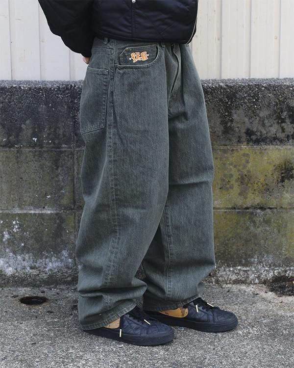 バギーシルエットの5ポケットデニムパンツ。