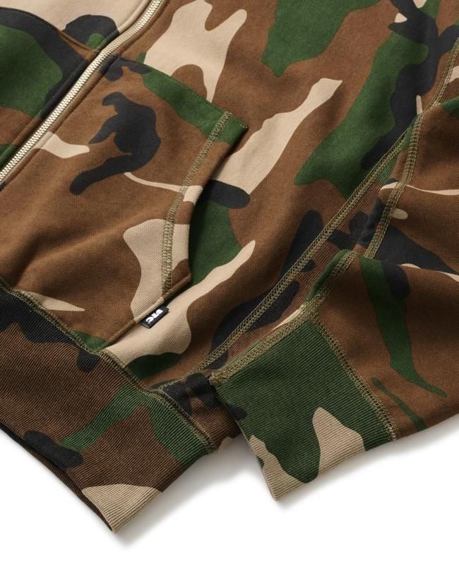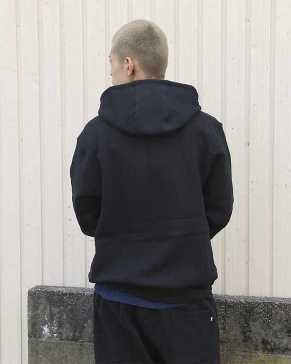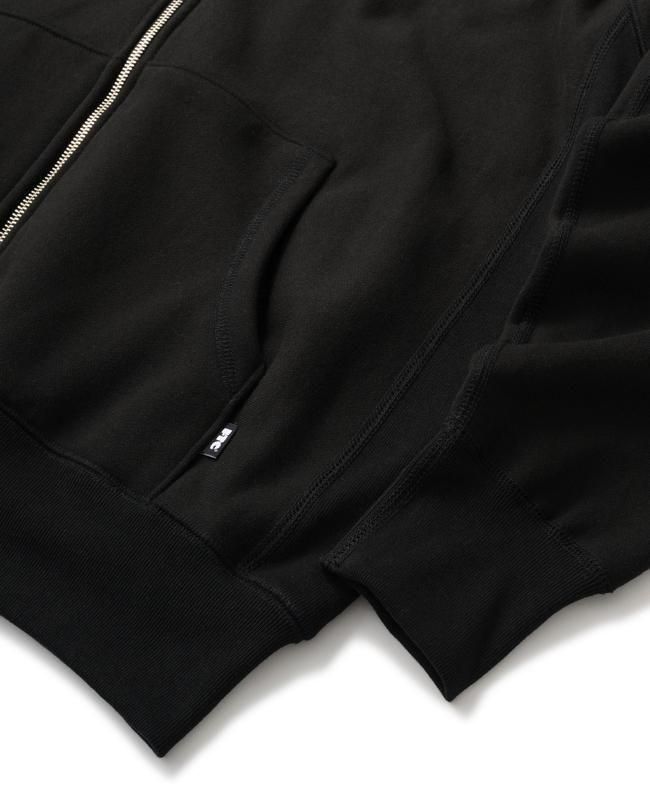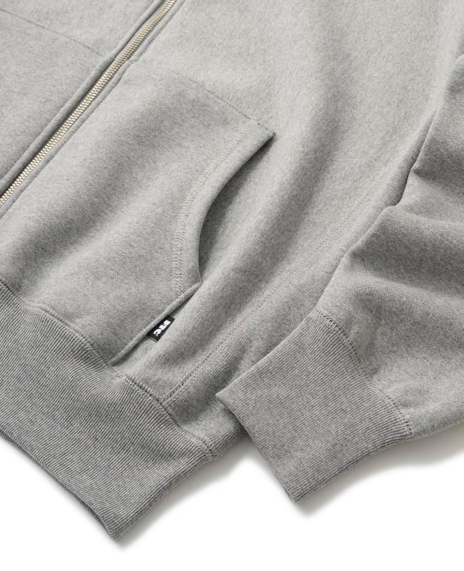 オリジナルのヘビーオンス裏起毛スウェット生地を使用したジップアップフーディー。