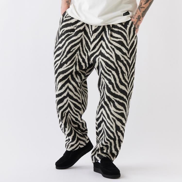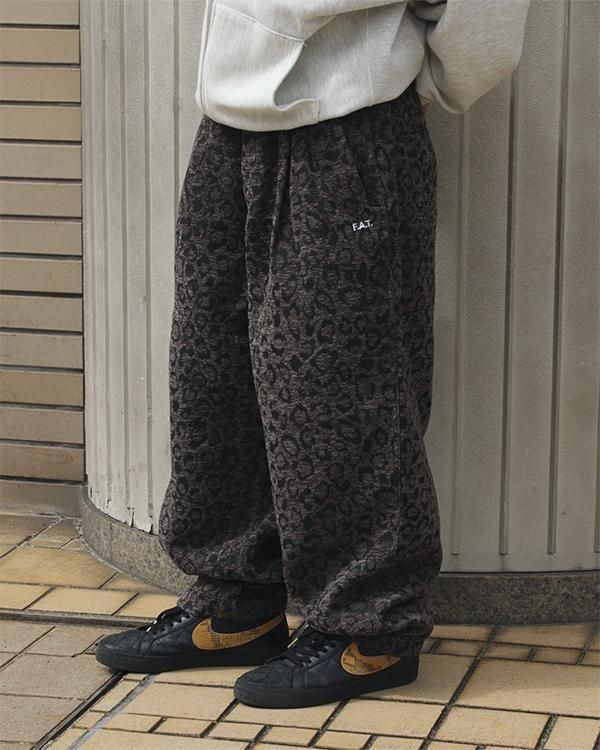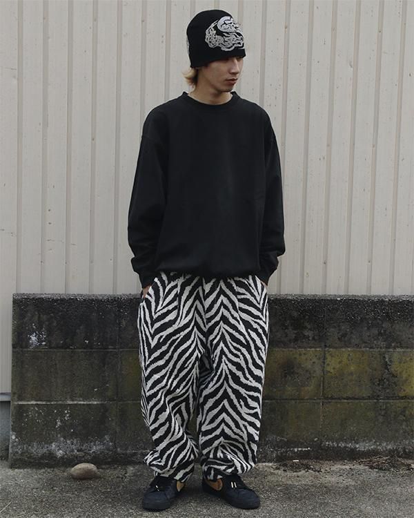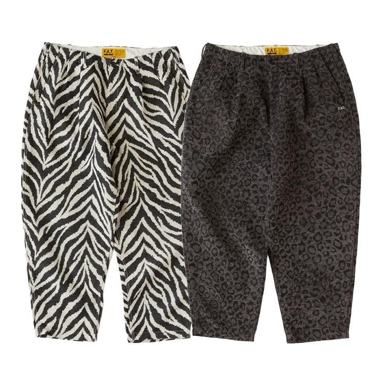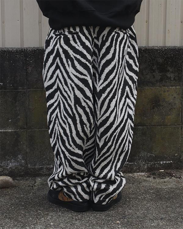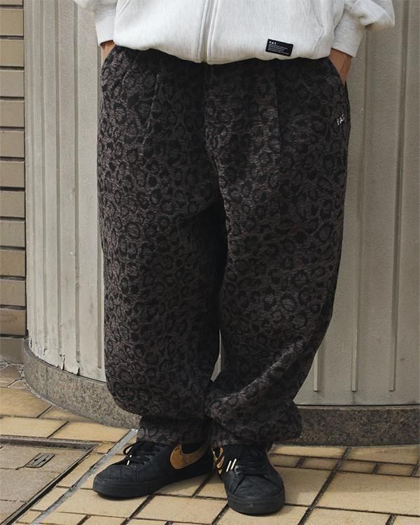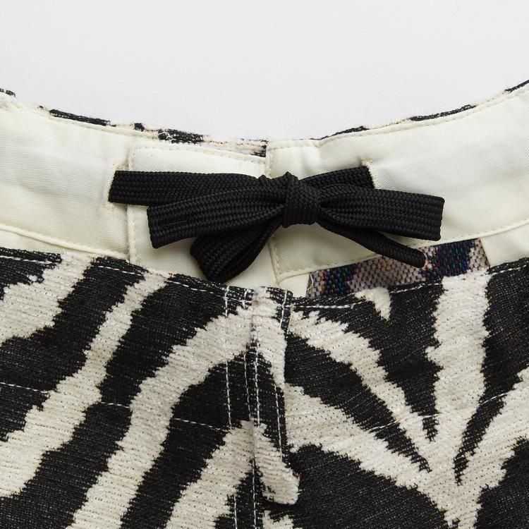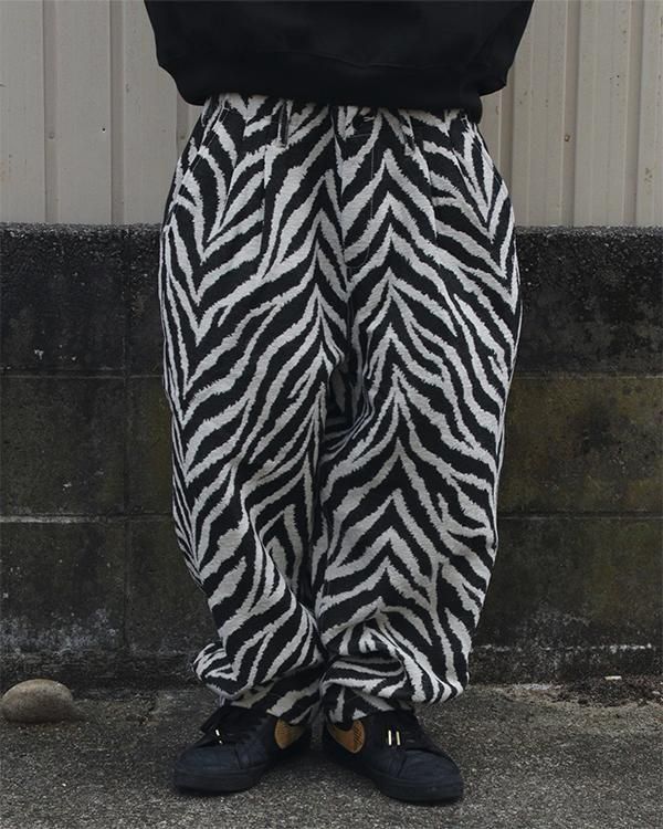 アニマルパターンが印象的な暖かみのあるゴブランジャガード素材を使用したワイドパンツ。