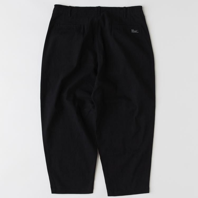 股上を深くし、渡りを広くとることによりヒップから膝にかけてボリュームを持たせたワイドテーパードに加え、ジャストレングスによる独特なシルエットが魅力。
