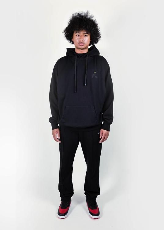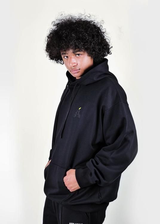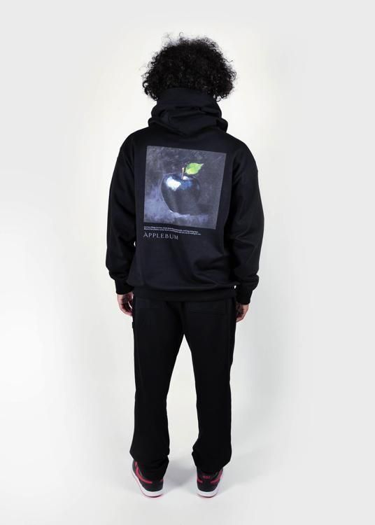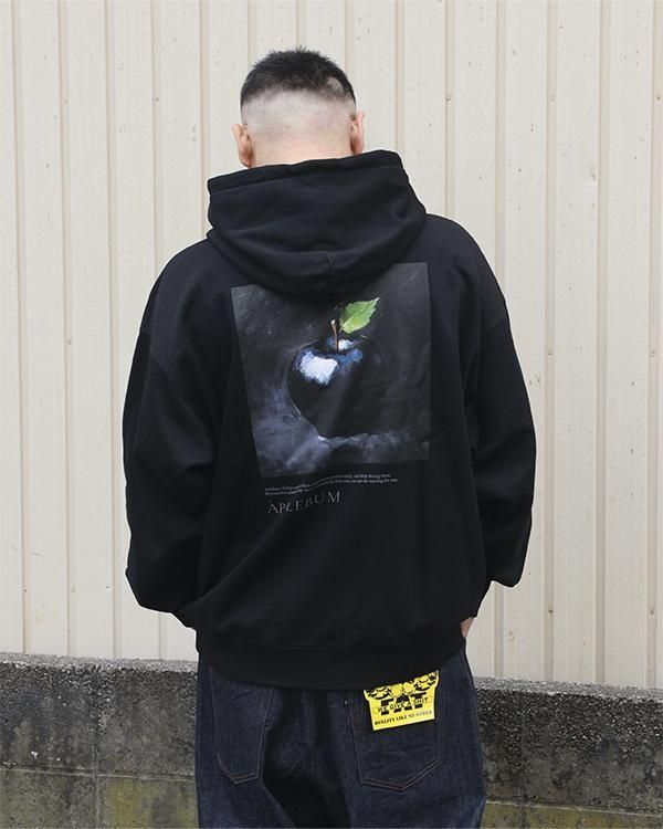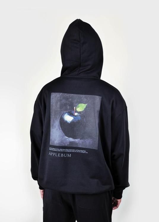 黒い林檎を描いた油絵を大胆にデザインしたスウェットパーカー。