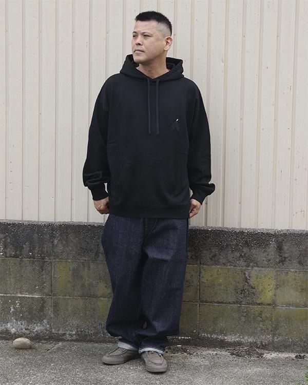 生地は17ozの肉厚で適度なハリがある綿100%裏パイル生地を使用しております。