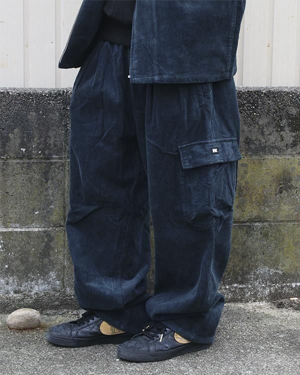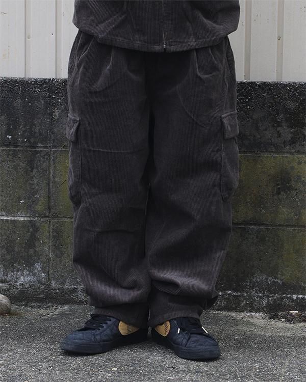 中肉のコットンコーデュロイを使用したタック入りイージーカーゴパンツ。