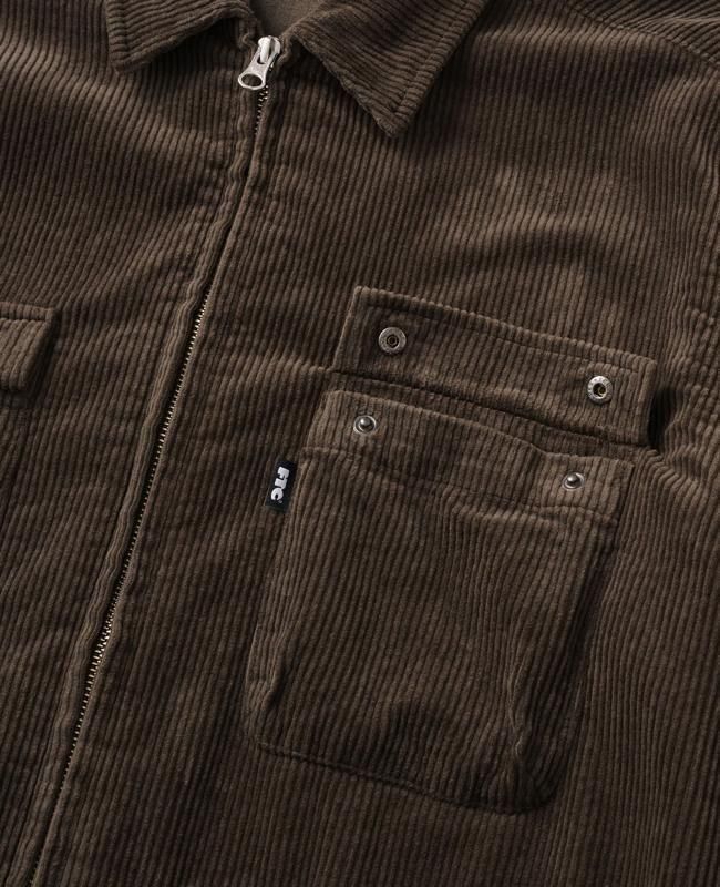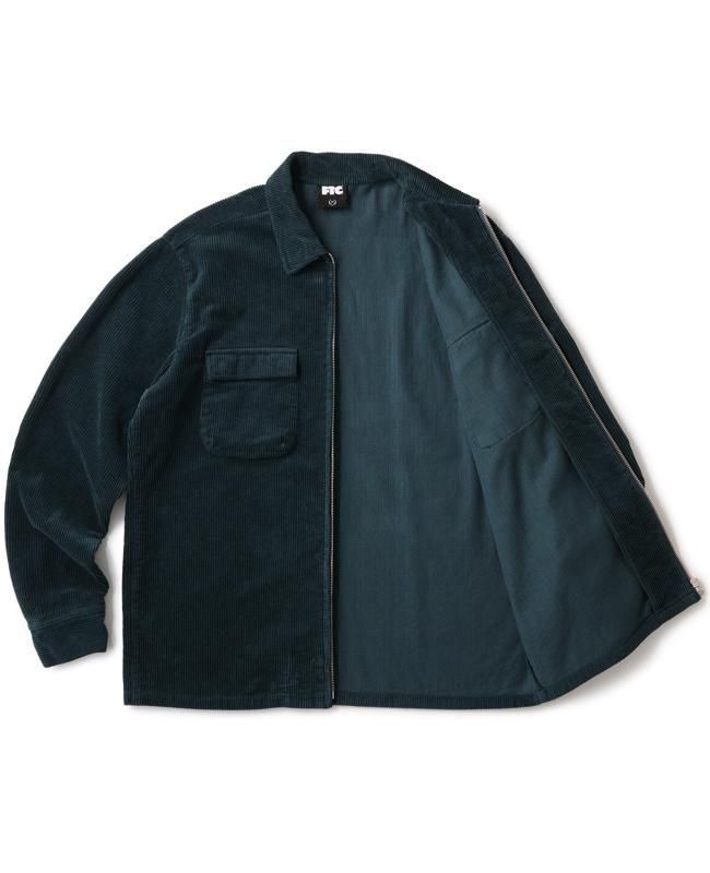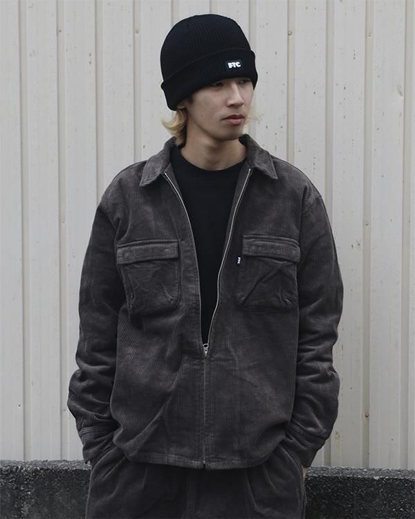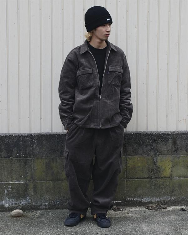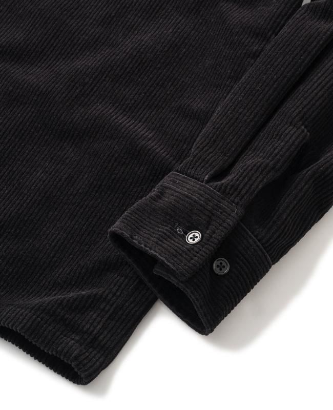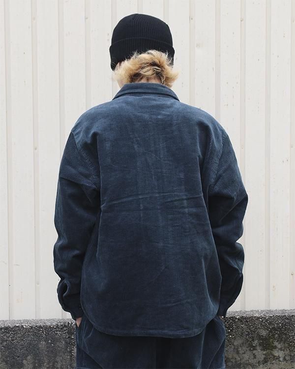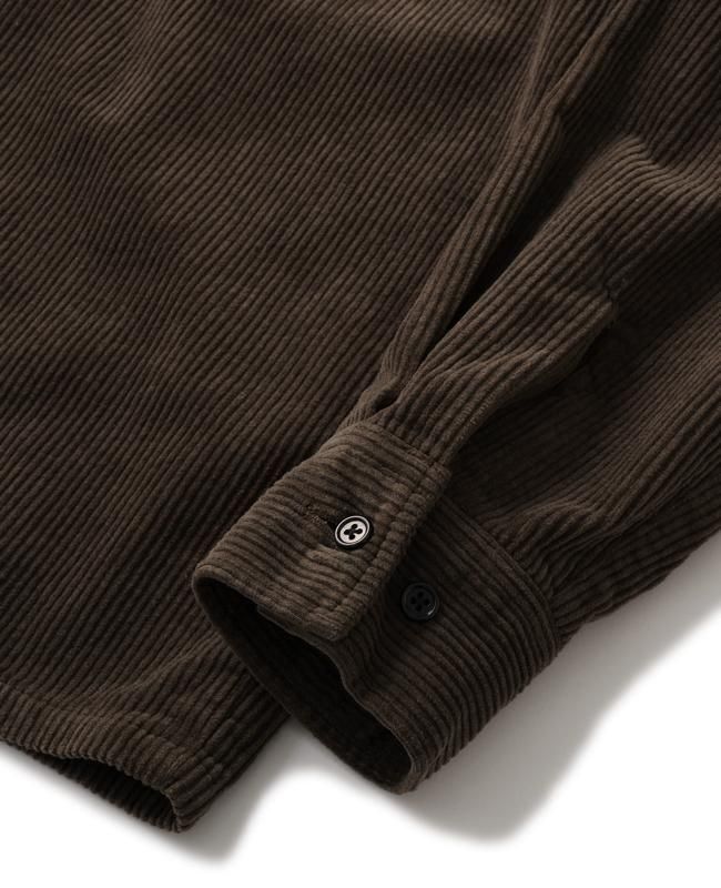 中肉のコットンコーデュロイを使用し、ウォッシュ加工を施したジップアップシャツ。