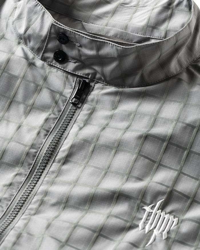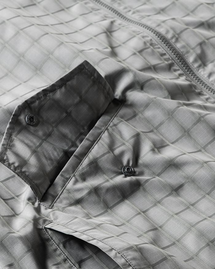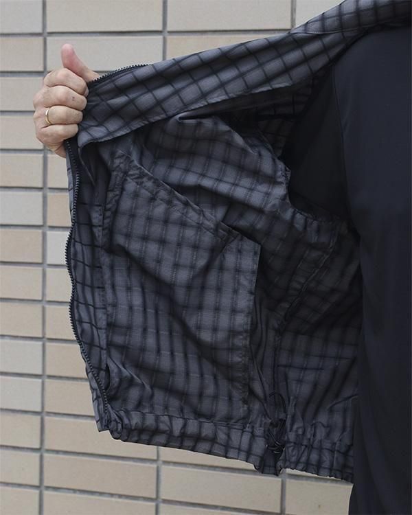 柄に立体感のあるポリエステル生地を使用した1枚モノのライトウェイトジャケット。