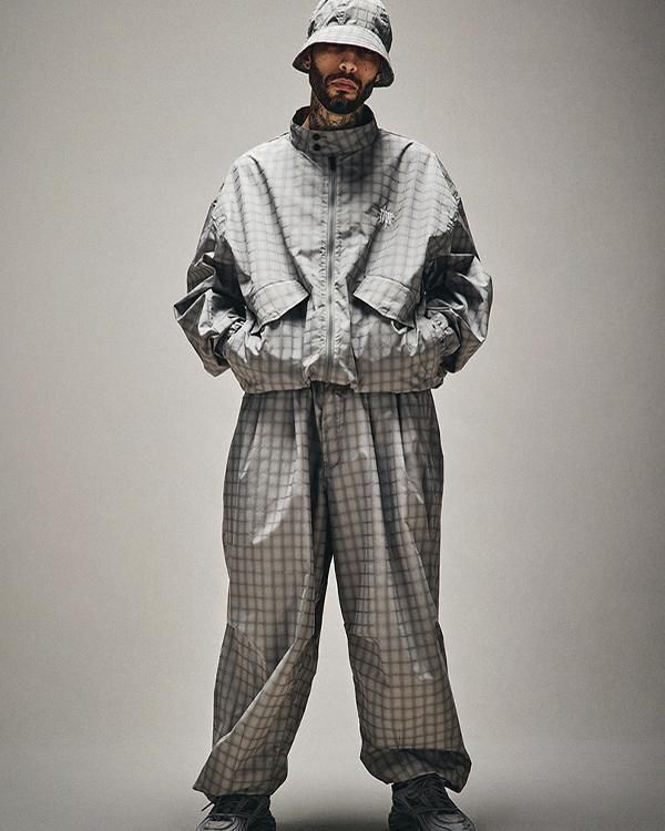 同素材のPLAID LIGHT BALLOON PANTSとのセットアップスタイルも可能。