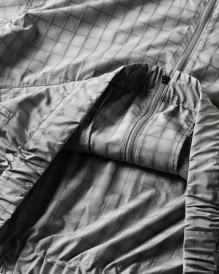 裾にはドローコードを巡らせシルエット調整が可能。
