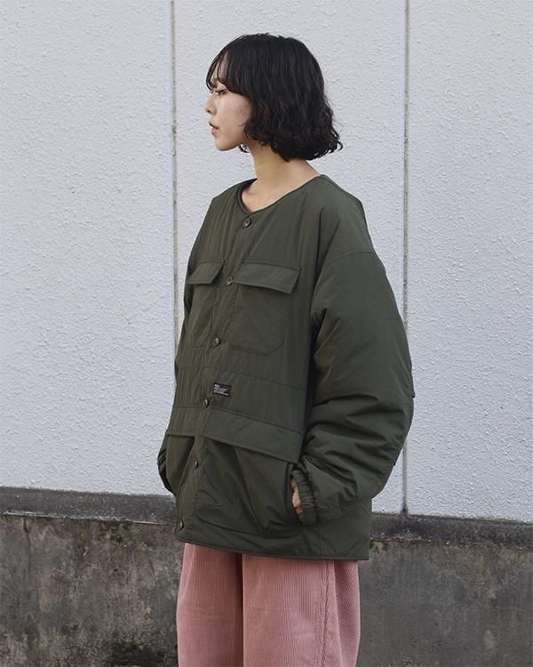 フラップポケット仕様のシンプルデザインは、スウェットパーカーの上から羽織るもよし、ライナーとしてアウターの中に合わせるなどマルチに活躍してくれるアイテム。