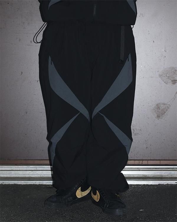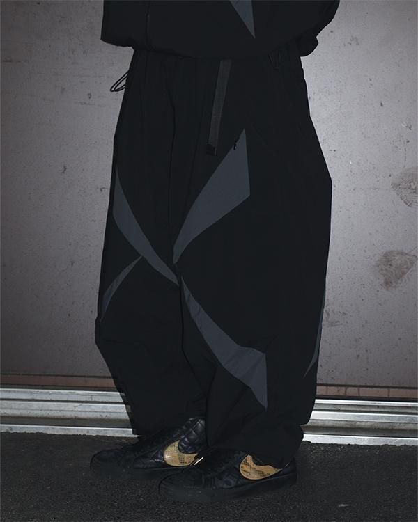 トライアングルの切り替えデザインを施したバルーンパンツ。