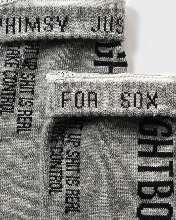WHIMSYの定番ソックスをベースに、ブランドネームデザインをジャガード編みで表現。