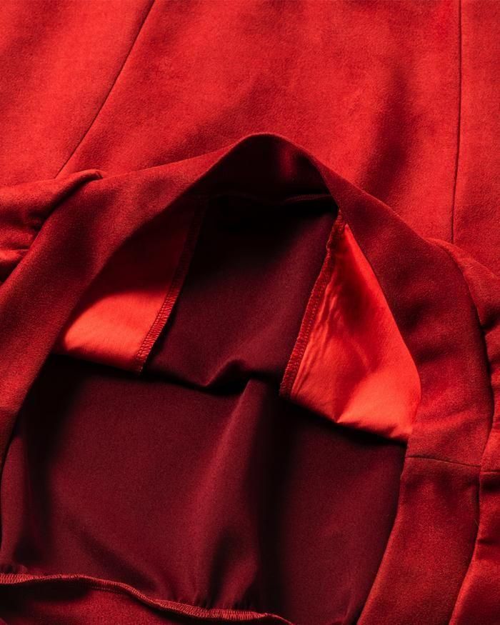 身頃前後に曲線の切り替えデザインを施し、フロントにはその切り替えに沿ってファスナー付きのコンシールドポケットを左右に装備。
