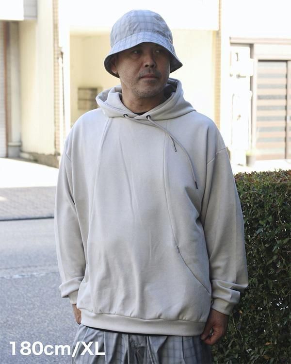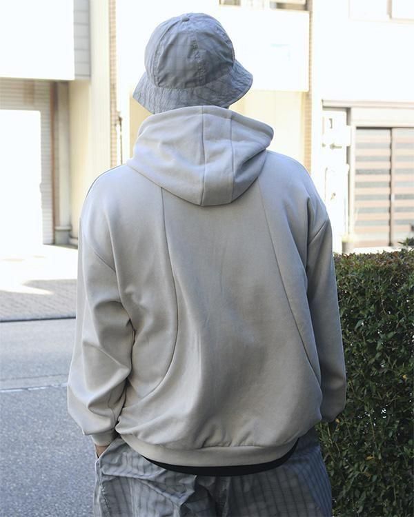 ゆったりとしたボックスシルエットで、フードは3パネル仕様。