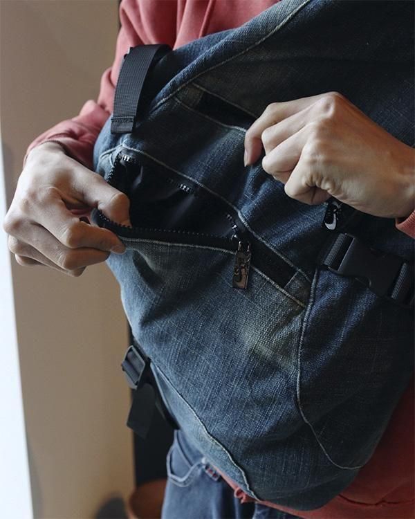 フロントにはジッパー付きのダブルコンパートメント、メインはジッパー開閉。