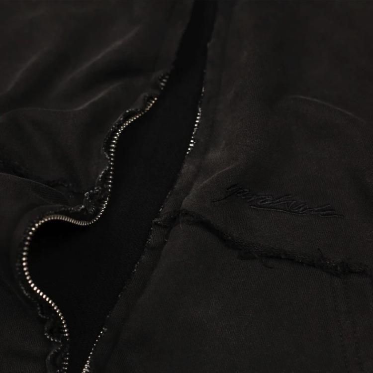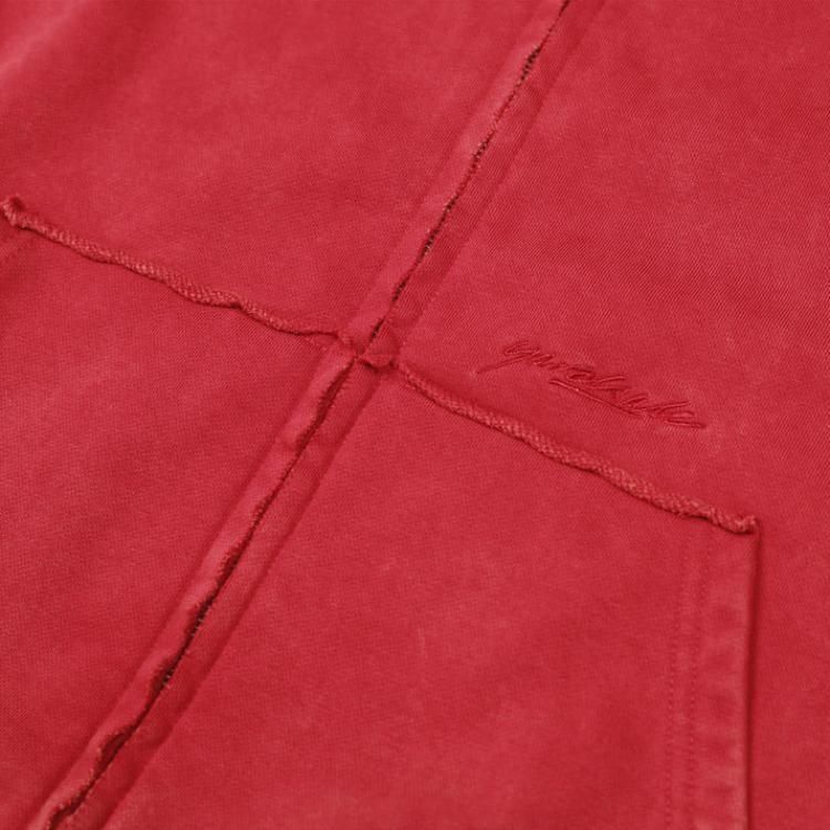 Raw seam detailing and garment-dyed finish.