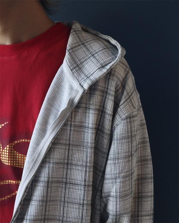 コットンワッフル素材のフルジップパーカー。
