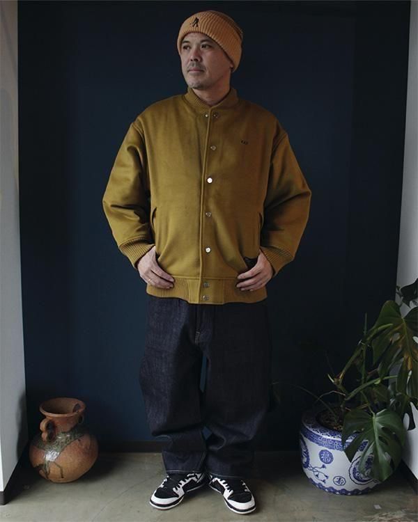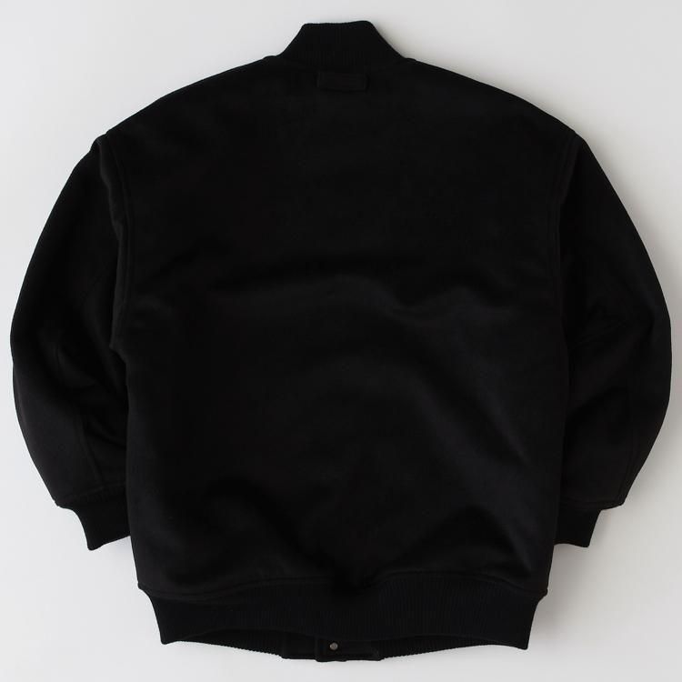 柔らかな起毛感が特徴のT/Rメルトン素材を使用したスタジアムジャケット。オーセンティックなリブ衿仕様とワントーンカラーにより、いつもとは一味違った落ち着いたコーディネートを楽しめるアイテム。胸のロゴ刺繍とソリッドなフラットボタンが程よいアクセントを与えてくれる。