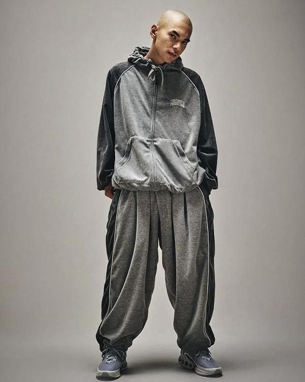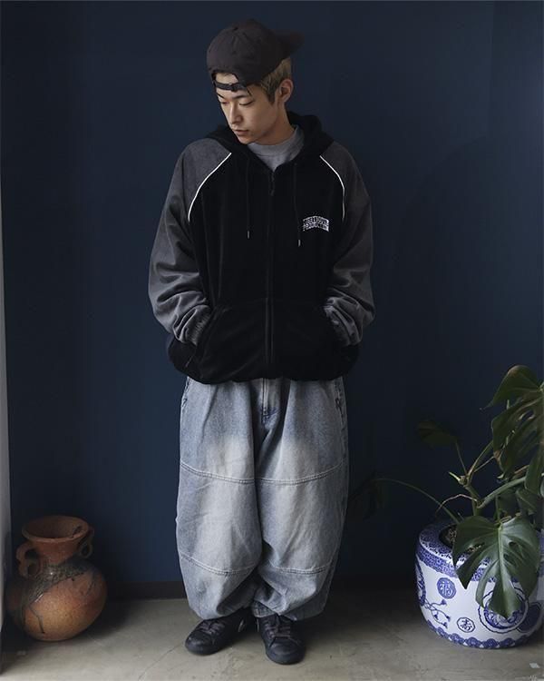 同素材のVELOUR PIPING BALLOON PANTSとのセットアップもオススメ。