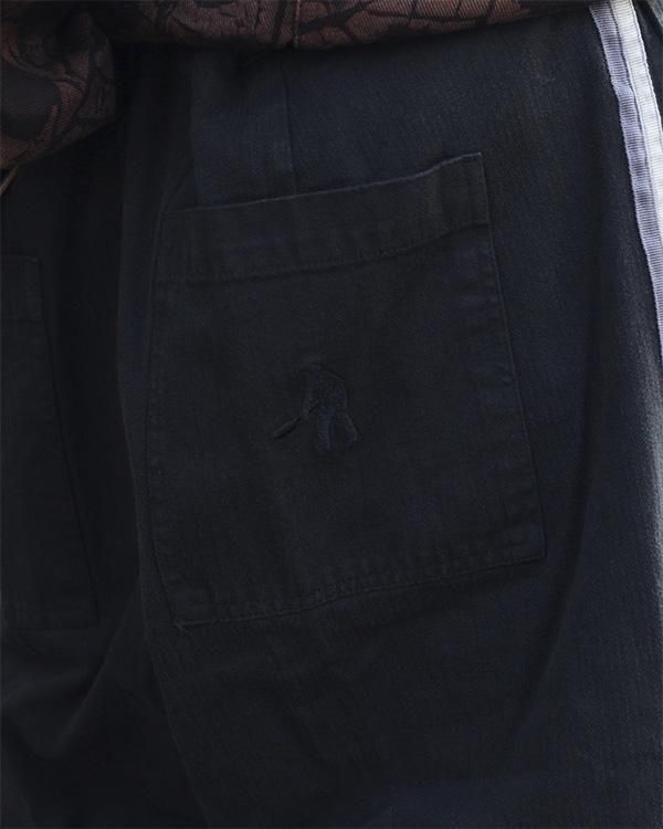 Pass~Port Leagues Club striped pant in vintage black in from range #46. The Leagues club trouser is made from 100% garment dyed cotton herringbone and features double pleats and custom button. The striped trouser introduces a new detail with contrast woven stripe down each side.