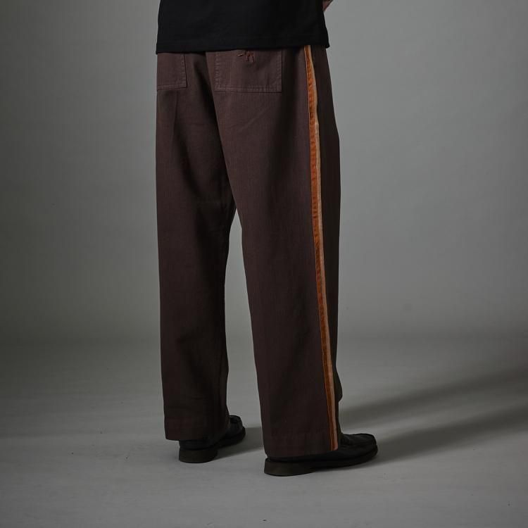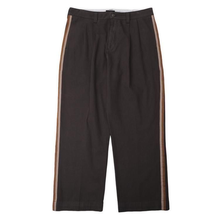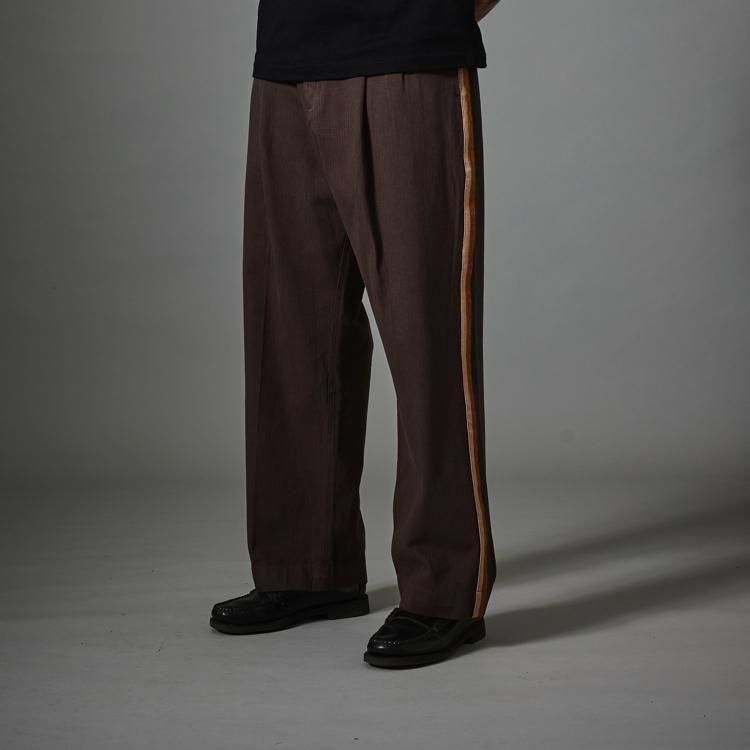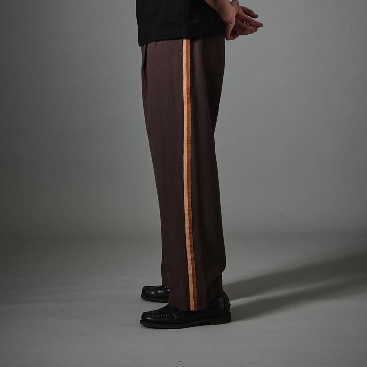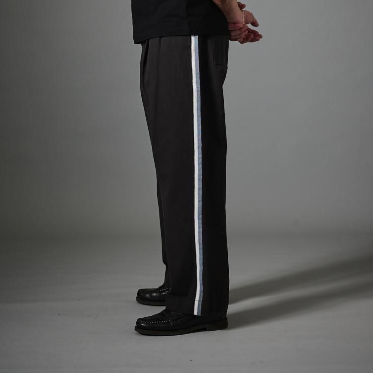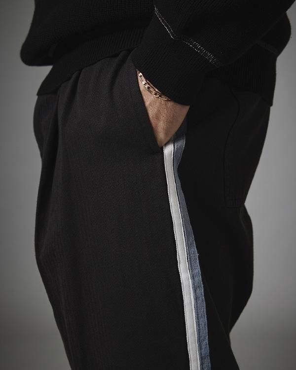 両サイドにコントラストの織りストライプを施した、新しいディテールが加わったストライプトラウザーです。