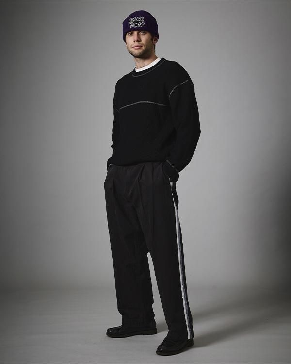 Pass~Portのオーガニックライン#46のブラックオーバーロックオーガニックニットセーター。