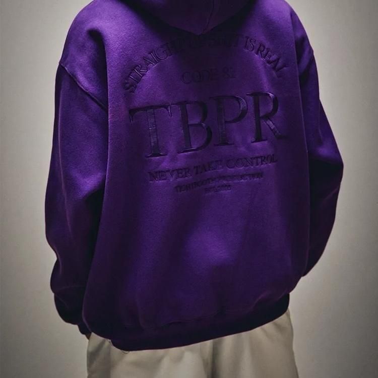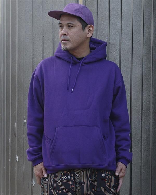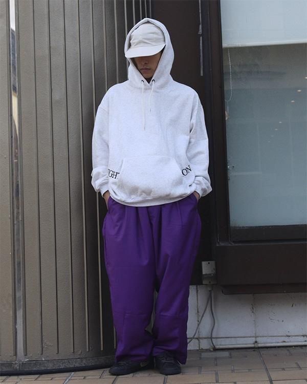 アイコンであるSTRAIGHT UPロゴグラフィックを大きくバックプリントしたスウェットフーディ。