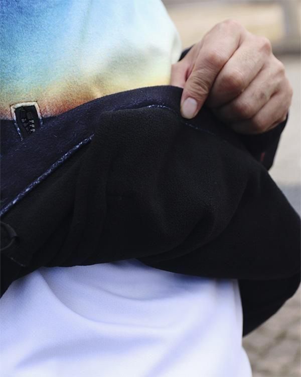 APPLEBUMの代表的なグラフィックデザインであり、長年お客様に愛されている朝陽の美しいグラデーションが際立つ”Summer Madness”柄を大胆に落とし込んだフリースジャケット。