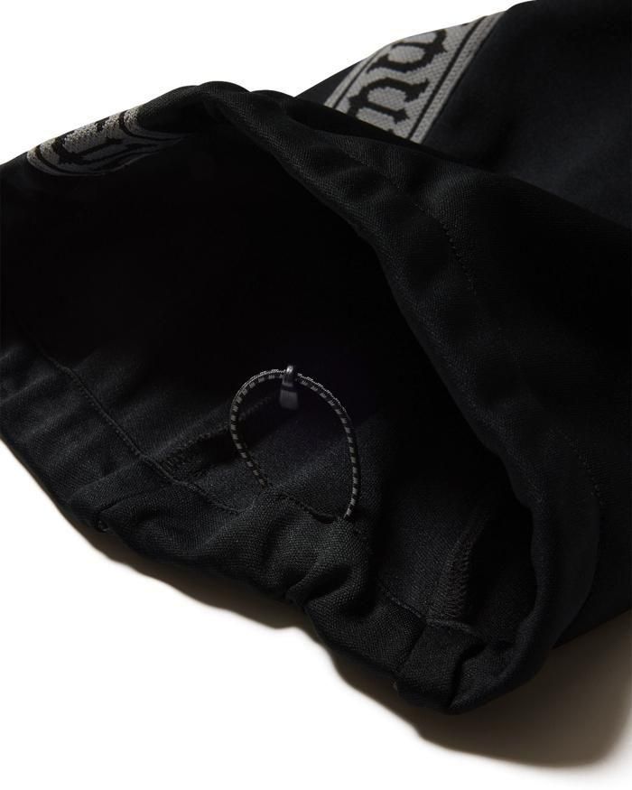 左足裾のマチ付近にもグラフィックプリント入り。セットアップで着られるトラックジャケットと一緒にどうぞ。