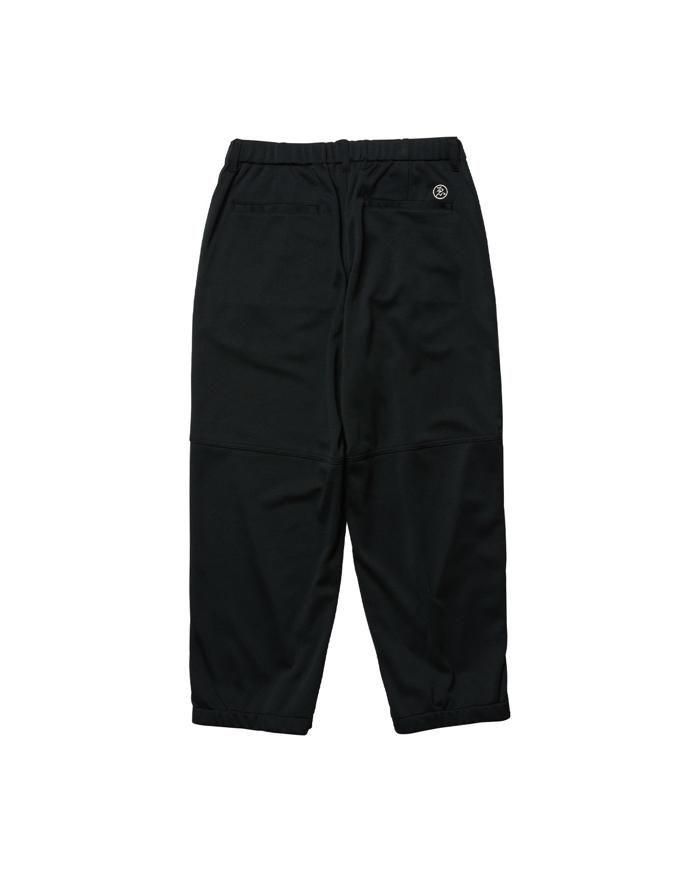 左右のEロゴジャカードテープ横にはスラッシュポケット、後ろにはバックポケット搭載で、右のバックポケット上にはシルバーの“ゑ”刺繍入り。膝裏付近に切り替え付き。裾にはファスナー付きのマチとアジャスター付きドローコードでフィット感の調整が可能です。