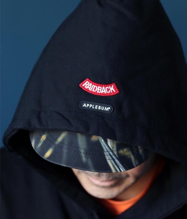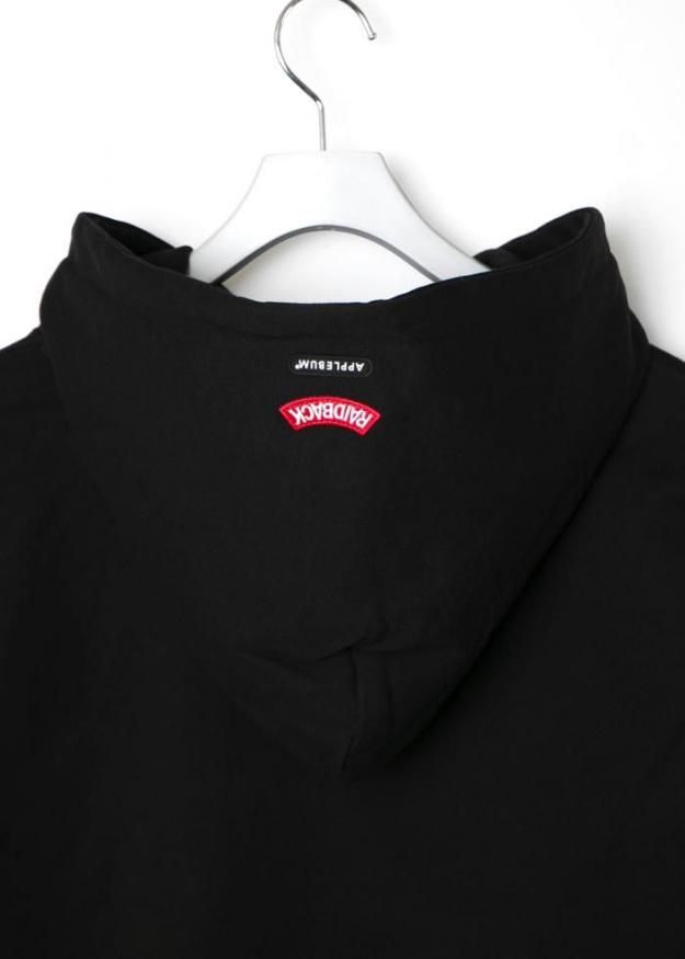 APPLEBUM × raidback fabricによるコラボレーションスウェットパーカー。